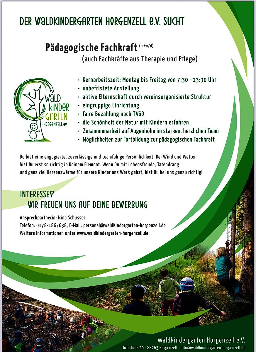 Wir freuen uns auf Deine Bewerbung an Nina Schusser personal@waldkindergarten-horgenzell.de